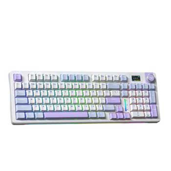 Bàn phím gaming cơ không dây 3 mode - Dung lượng Pin : 4000mAh - Cổng kết nối : Wireless 2.4 GHz / Bluetooth / Type-C - Số lượng phím : 96 - Kiểu switch : Nimbus V3 switch - Đèn bàn phím : LED RGB 19 hiệu ứng ánh sáng - Phụ kiện kèm theo : Sách hướng dẫn sử dụng + 4 Switch tặng kèm + Dây USB type-C + Dụng cụ thay keycap + Bộ chổi và khăn vệ sinh bàn phím - Chất liệu : Nhựa PBT - Hệ điều hành hỗ trợ : WIN XP7/8/10/Android/IOS/MAC - Màu sắc : Xanh dương + Trắng + Tím - Kích thước : 406,6 × 137,9 × 45,1 ± 0,2mm , Khối lượng : 900g