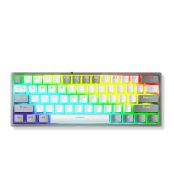 Bàn phím cơ Gaming có dây : - Cổng kết nối : USB Type-C - Số lượng phím : 61 phím - Kiểu switch : Blue Switch - Đèn bàn phím : LED RGB - Chất liệu : Nhựa ABS - Hệ điều hành hỗ trợ : WIN XP/WIN7/WIN8/WIN10/Android/IOS/MAC - Màu sắc : Xám Trắng - Kích thước : 298,38 x 108,19 x 37,02 mm , Khối lượng ; 431g