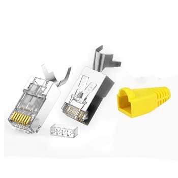 Đầu bấm dây mạng RJ45, Tương thích: RJ45 Cat 6A FTP, Cat7. Chất liệu: Chân bấm đồng nguyên chất, mạ vàng 24K. Vỏ nhựa trong cao cấp chống gãy, vỡ. Có đầu phân cáp trước khi bấm, chống lệch chân, tiết kiệm thời gian thi công. Chụp cao su bảo vệ. Để luồn 8 sợi một cách hoàn hảo, chúng tôi khuyên bạn nên đảm bảo rằng đường kính của mỗi sợi cáp của bạn không vượt quá 1,50mm