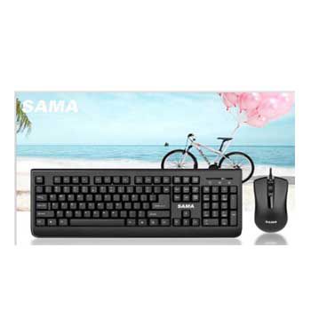 Bộ Phím chuột SAMA MK 160 - Combo phím chuột văn phòng, có dây - Kết nối USB, màu đen - Fullsize 104 phím - Bàn phím thiết kế chống nước - Tuổi thọ phím lên tới 10 triệu lần bấm - Font chữ keycap in UV - Chuột thiết kế công thái học - Dây cáp 1,5m - Con lăn chống trượt