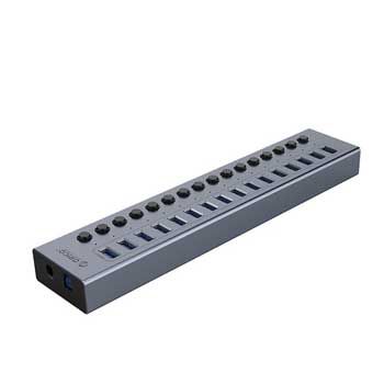 Bộ chia USB HUB 16 cổng USB 3.0 ORICO BT2U3-16AB-GY Đầu vào (input): Cáp 1m USB 3.0 Đầu ra (output): 16 cổng USB 3.0 Type A. Công tắc riêng từng cổng. Chất liệu nhôm, mầu xám. Đèn LED . Cáp dài 1m. Có Adapter cấp nguồn 78W